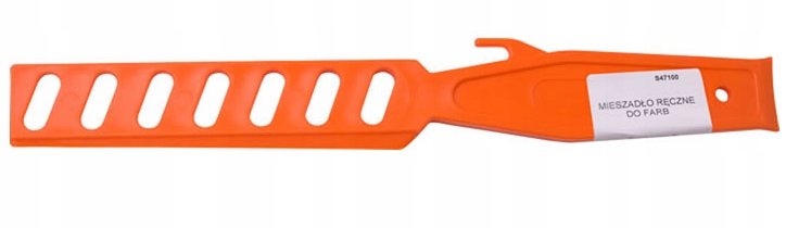 Plastikowe mieszadło ręczne, które dzięki perforowanej konstrukcji równomiernie miesza farbę, nie pozostawiając osadów.