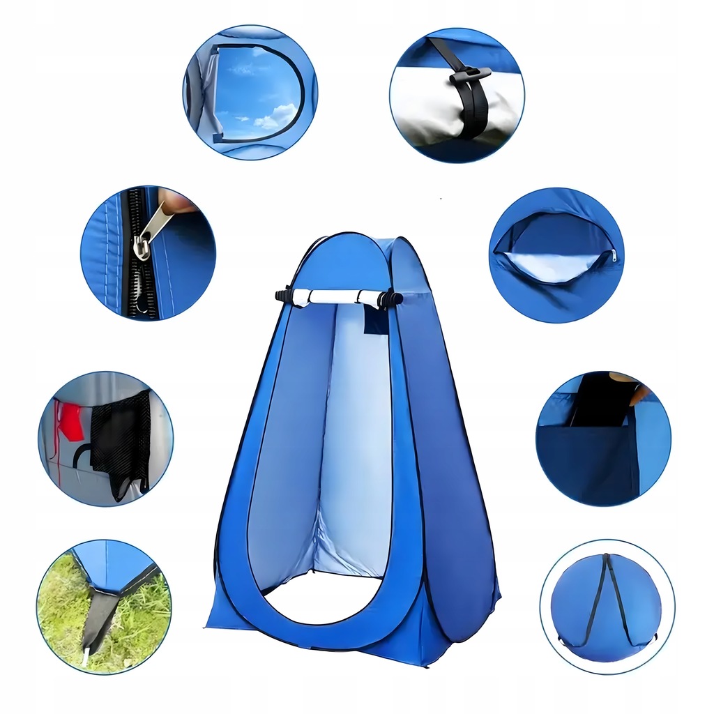 Może służyć jako przebieralnia, namiot prysznicowy, toaleta turystyczna lub schronienie przed słońcem i wiatrem.