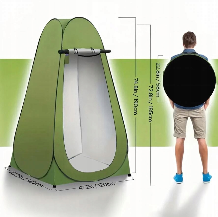 Może służyć jako przebieralnia, namiot prysznicowy, toaleta turystyczna lub schronienie przed słońcem i wiatrem.