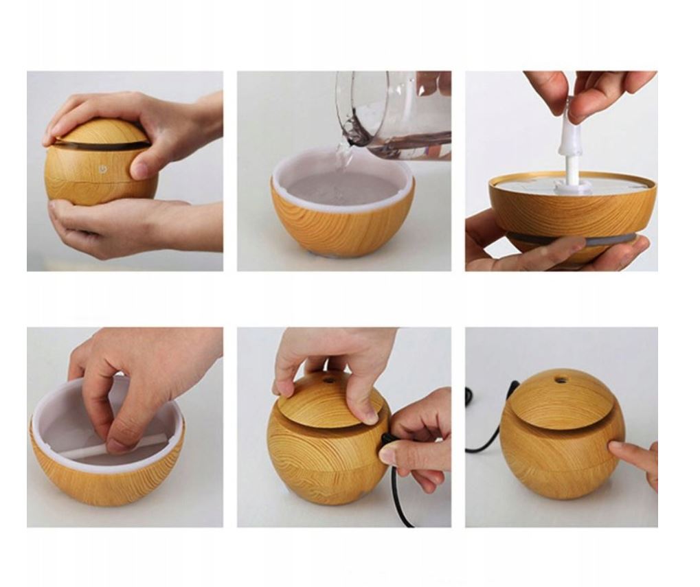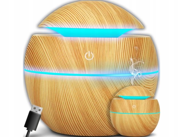 - Nawilżacz z wbudowanym światłem świetnie sprawdzi się, także jako lampka nocna, dzięki temu będziesz mógł ją wykorzystać do sypialni lub salonu. Dyfuzor posiada zasilanie USB- dołączone do zestawu.