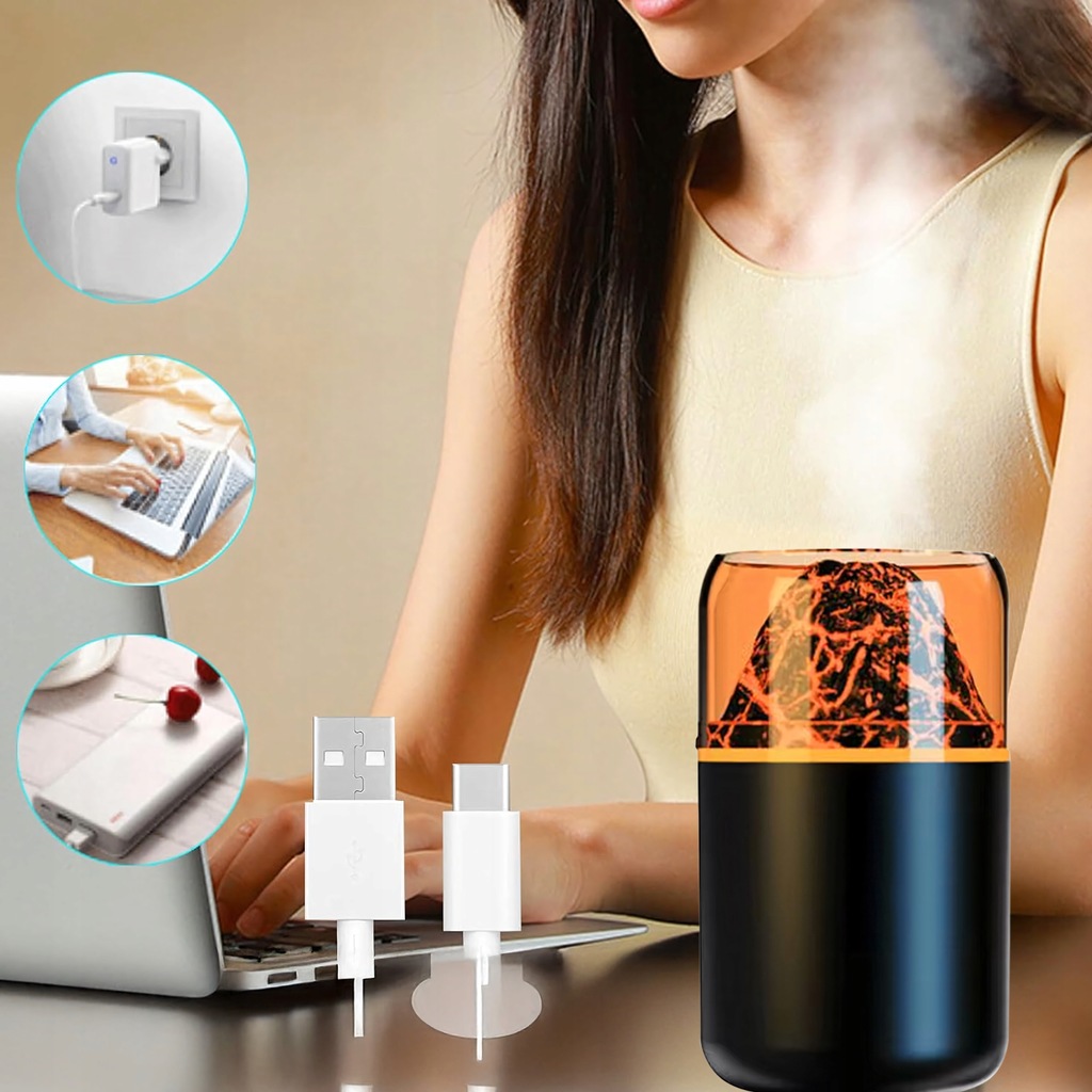 NAWILŻACZ POWIETRZA LED AROMATERAPIA DYFUZOR ZAPACHOWY WULKAN EFEKT OGNIA