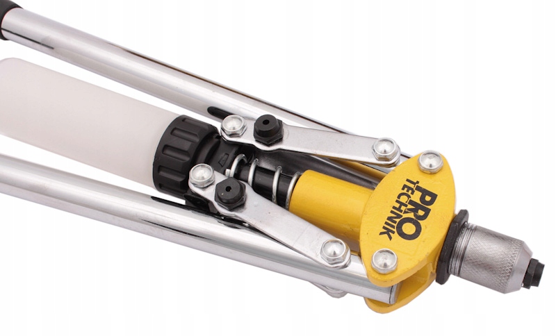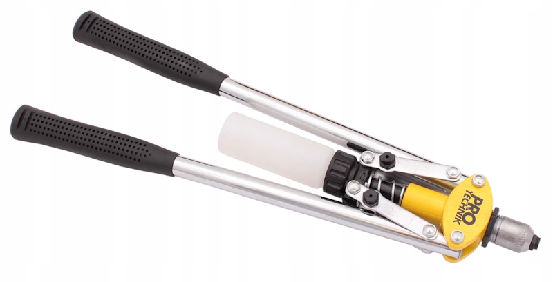 Aby zwiększyć komfort wykonywanej pracy uchwyty naszej nitownicy zostały zakończone wyprofilowanymi gumowymi rączkami zapobiegającymi poślizgowi w trakcie zaciskania.
