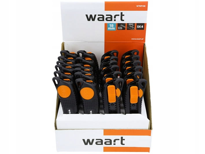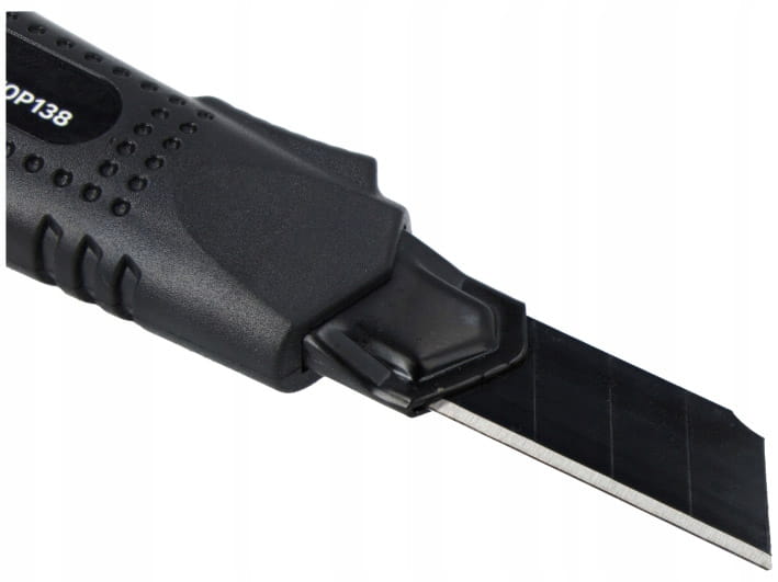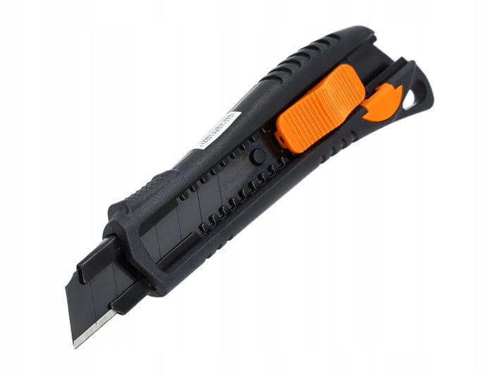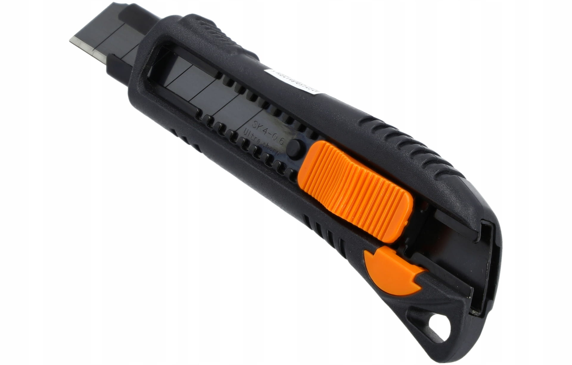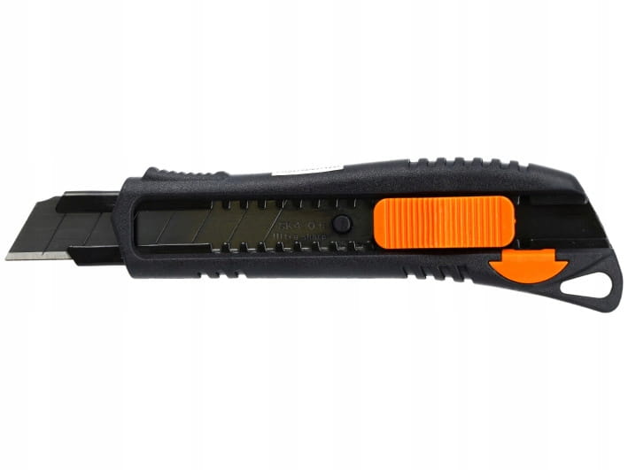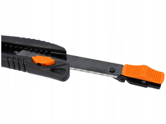 Nóż z ostrzem łamanym idealnie nadaje się do prac lekkich np. cięcia taśm klejących, papieru, tektury, kartonu, folię, tapet itp. Ostrze dzięki segmentowej budowie jest bardzo wydajne, stępioną część po prostu odłamujemy. Ostrze chowane za pomocą automatycznego mechanizmu, z funkcją blokady.