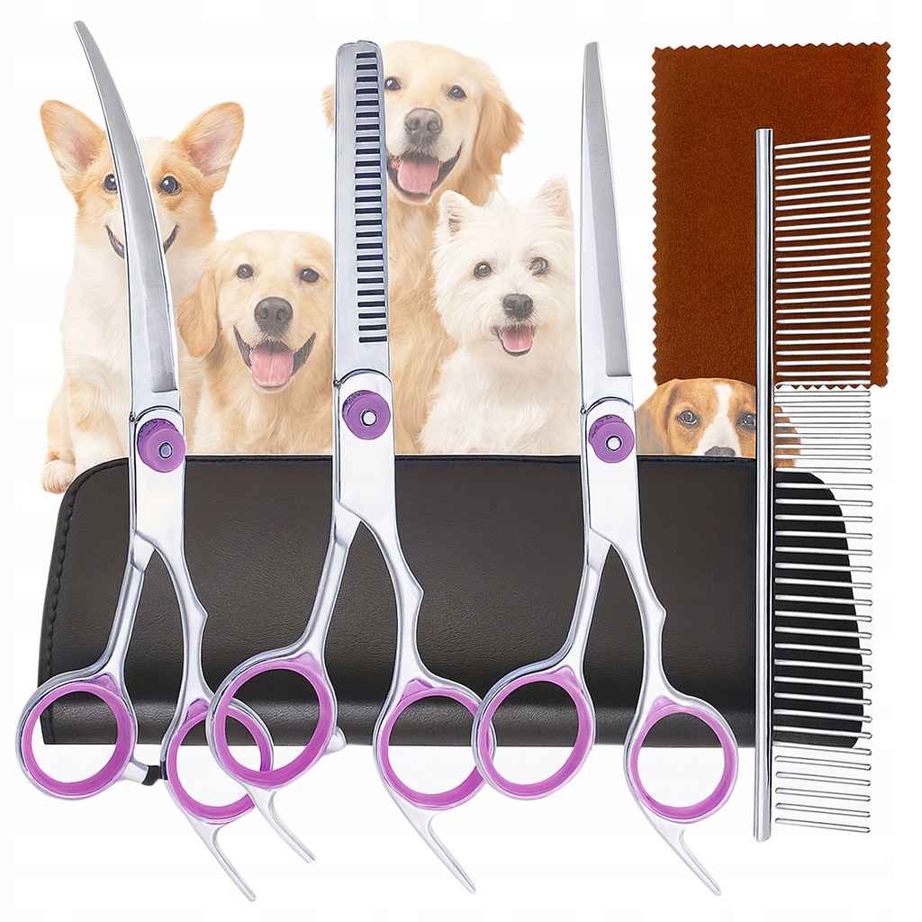 NOŻYCZKI DO STRZYŻENIA ZWIERZĄT PSÓW KOTÓW PROFESJONALNY ZESTAW 4 SZT ETUI