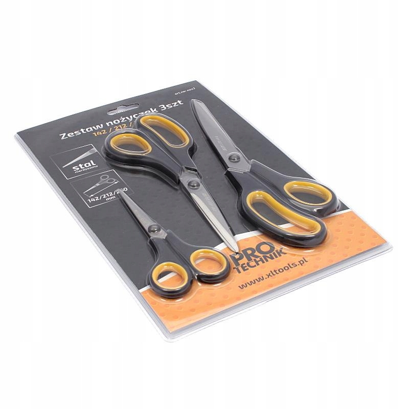 Uniwersalne nożyczki, niezbędne w każdym domu - poręczny zestaw 3szt. Wyprodukowane ze stali nierdzewnej, posiadają dwumateriałowy uchwyt i hartowane ostrza.