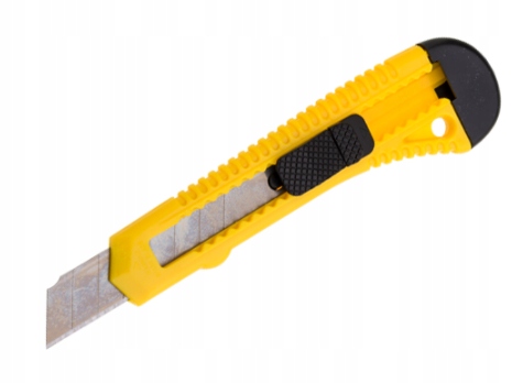 Nóż z ostrzem łamanym idealnie nadaje się do prac lekkich np. cięcia taśm klejących, papieru, tektury, kartonu, folię, tapet itp.