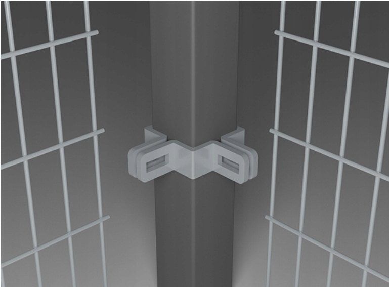 ✅ Obejma narożna kompletna do montażu paneli ogrodzeniowych na słupku.
