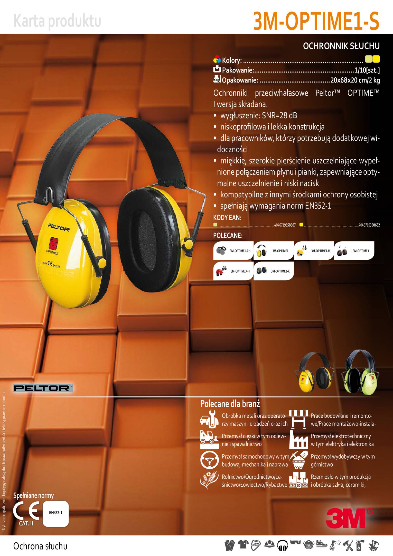 Ochronniki przeciwhałasowe Peltor™ OPTIME™ I wersja składana.