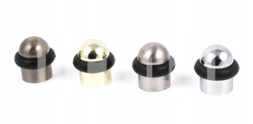 Odbojnik drzwiowy z odkręcaną klapką - maskownicą do śruby przytrzymującej odbojnik z podłożem. Dostępny w 4 kolorach. Satyna, chrom, złoty i antyczny mosiądz.