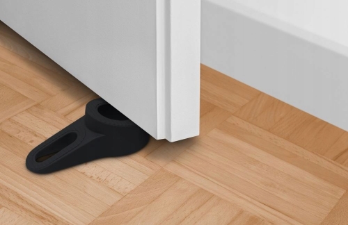 Klin do drzwi wykonany z elastycznego materiału, dzięki czemu nie niszczy spodniej części drzwi ani podłogi. Montowany tam gdzie nie chcemy lub nie możemy wiercić otworów.