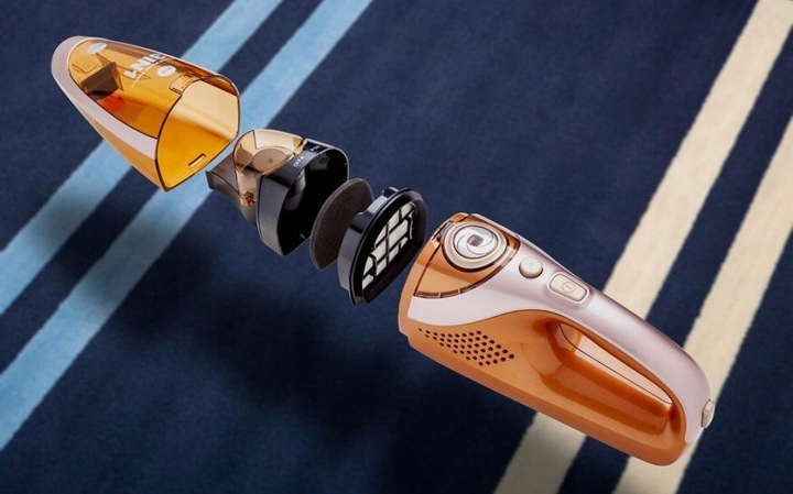 ⭐ Urządzenie jest wyposażone w przyjazny alergikom filtr HEPA, a także filtr gąbkowy i wkład filtrujący. Działa w dwóch zakresach mocy i z wykorzystaniem bezworkowej technologii cyklonowej, a pojemnik na kurz (a pojemności 0,5 L) można myć pod bieżącą wodą.