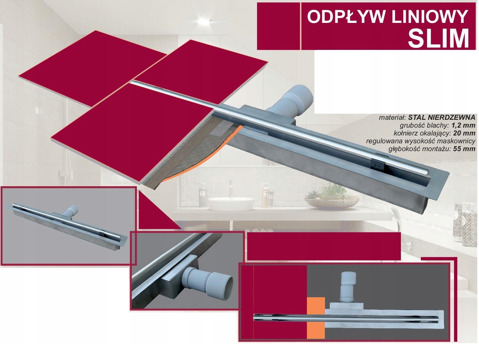 ODPŁYW LINIOWY SLIM NISKI 55 mm PRYSZNICOWY 90 cm