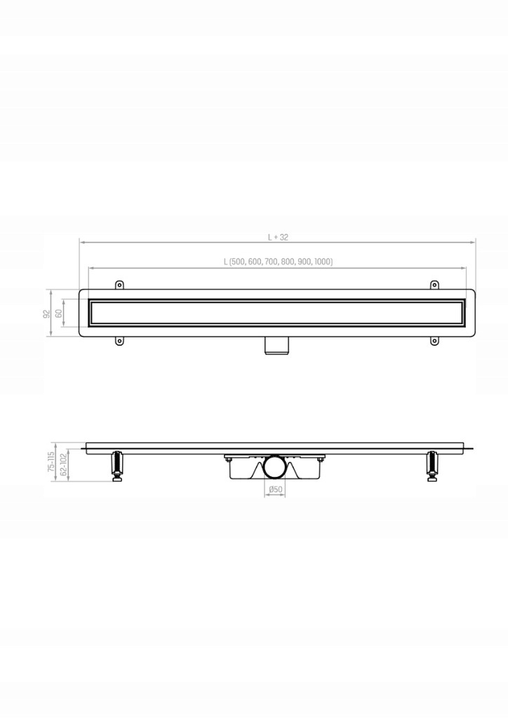 ▶ Odpływ przyścienny o długości 100 cm przeznaczony jest do