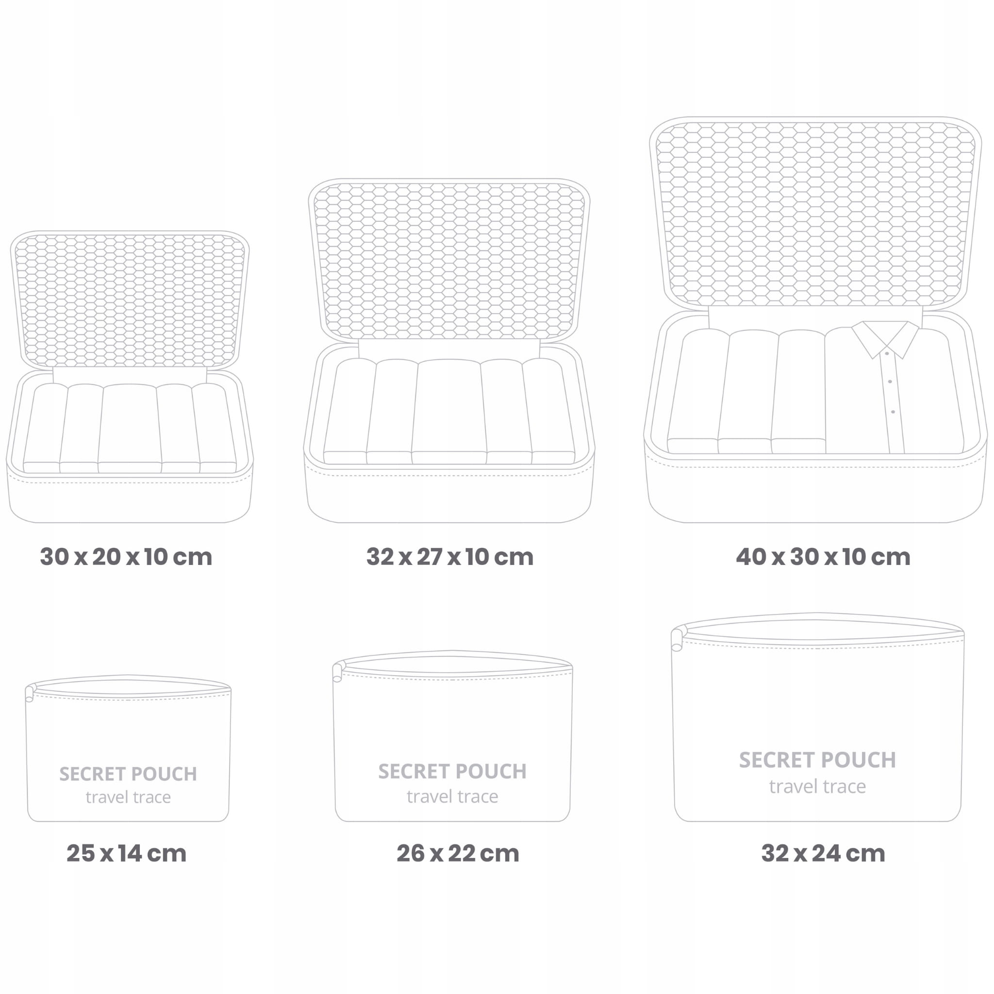 Zestaw 6 worków o różnych rozmiarach, zamykanych zamkiem błyskawicznym ułatwia segregację rzeczy w podróży czy w domowych pieleszach. Bez trudu oddzielisz spodnie od obuwia, koszule od bielizny, a osobno spakujesz ładowarki, tablet czy książki. Proste i przyjemne pakowanie walizki, czystość i porządek to cechy tego wyjątkowego produktu.