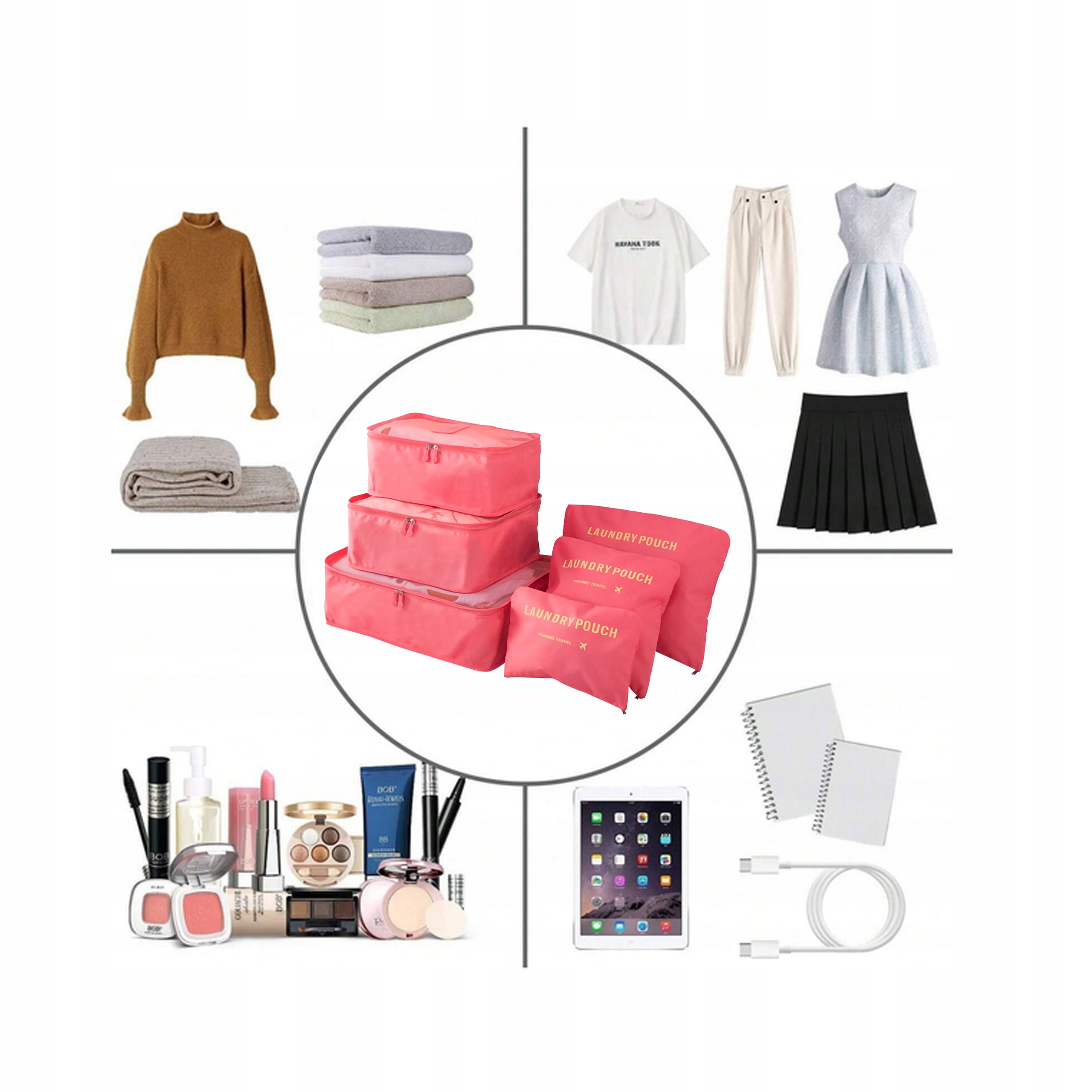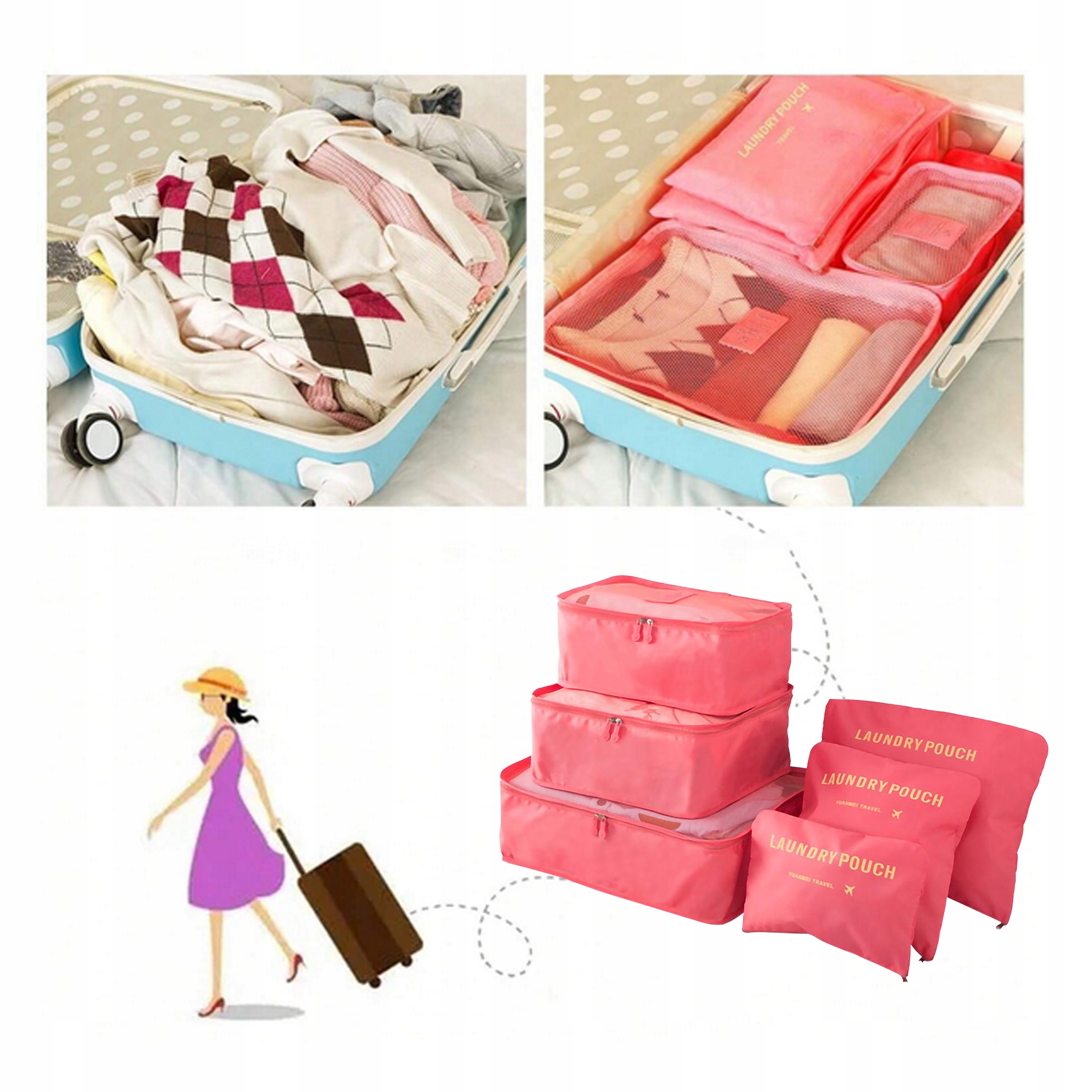 ORGANIZER PODRÓŻNY ZESTAW KOSMETYCZEK DO WALIZKI TORBY SZAFY ETUI 6 SZTUK