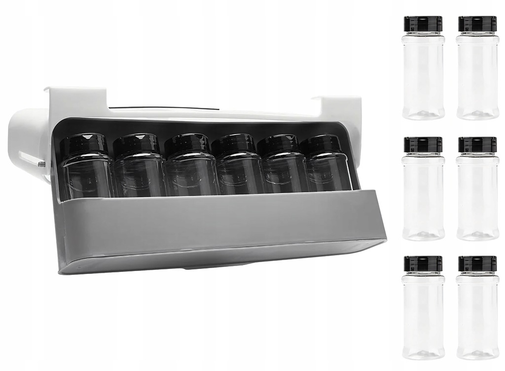 - Przezroczyste słoiczki – szybki podgląd zawartości i poziomu przypraw.