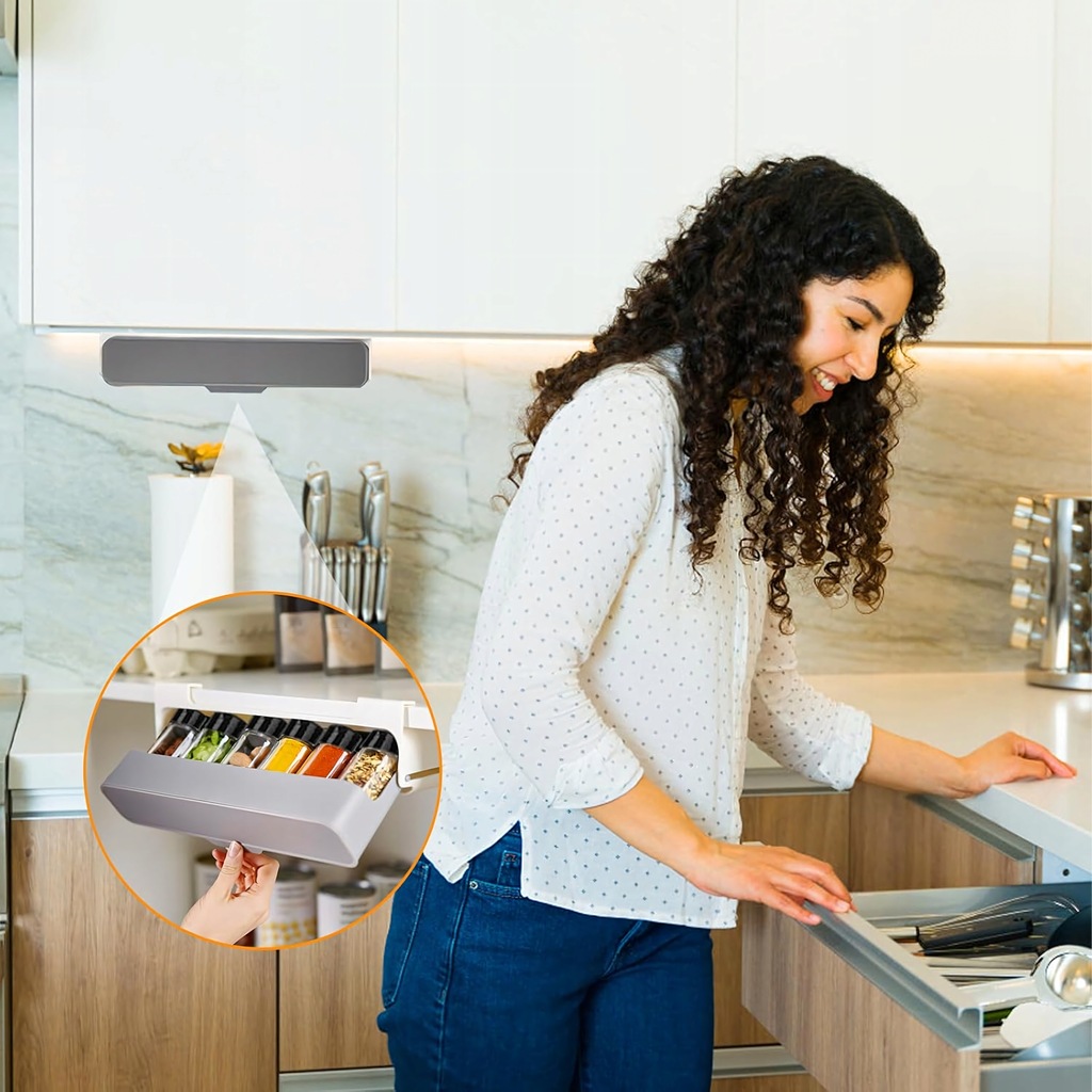 - Wysuwana szuflada – wygodny dostęp do przypraw w każdej chwili.