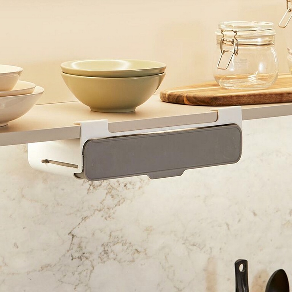 - Bez wiercenia – mocny klej 3M umożliwia łatwą instalację na przegródkach szafek.
