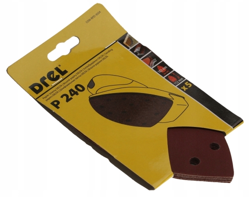 Trójkątny papier ścierny przeznaczony jest głównie do szlifowana w narożnikach mniejszych niż 90°. W zestawie znajdziesz 5 sztuk krążków, masz więc możliwość jego wymiany w przypadku wytarcia lub pracy na dużych powierzchniach.
