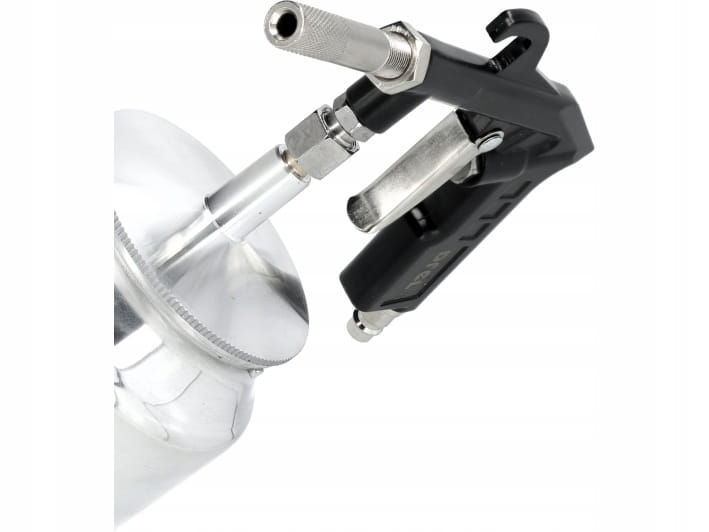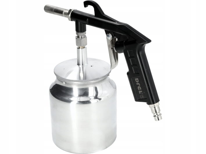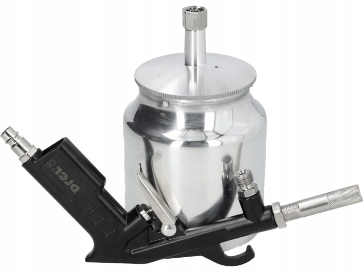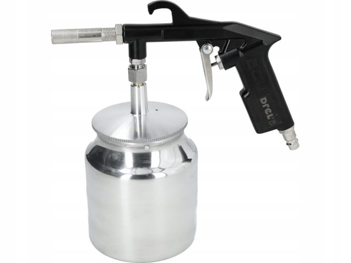 Pistolet do piaskowania ze zbiornikiem metalowym o pojemności 1 litra to narzędzie pneumatyczne przeznaczone do czyszczenia, usuwania rdzy, farby, lakieru oraz innych zanieczyszczeń z powierzchni za pomocą ścierniwa (np. piasku, korundu). Jest szeroko stosowany w warsztatach samochodowych, przemyśle oraz podczas prac renowacyjnych.
