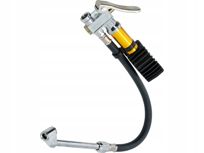 ▶ Pistolet do pompowania z manometrem, wężem z metalową przedłużką oraz końcówką o długości 40 cm, to profesjonalne narzędzie pneumatyczne przeznaczone do precyzyjnego pompowania opon i innych obiektów wymagających kontroli ciśnienia. Po podłączeniu do źródła sprężonego powietrza (np. kompresora), pistolet umożliwia precyzyjne pompowanie opon samochodowych, motocyklowych, rowerowych, a także innych nadmuchiwanych przedmiotów.