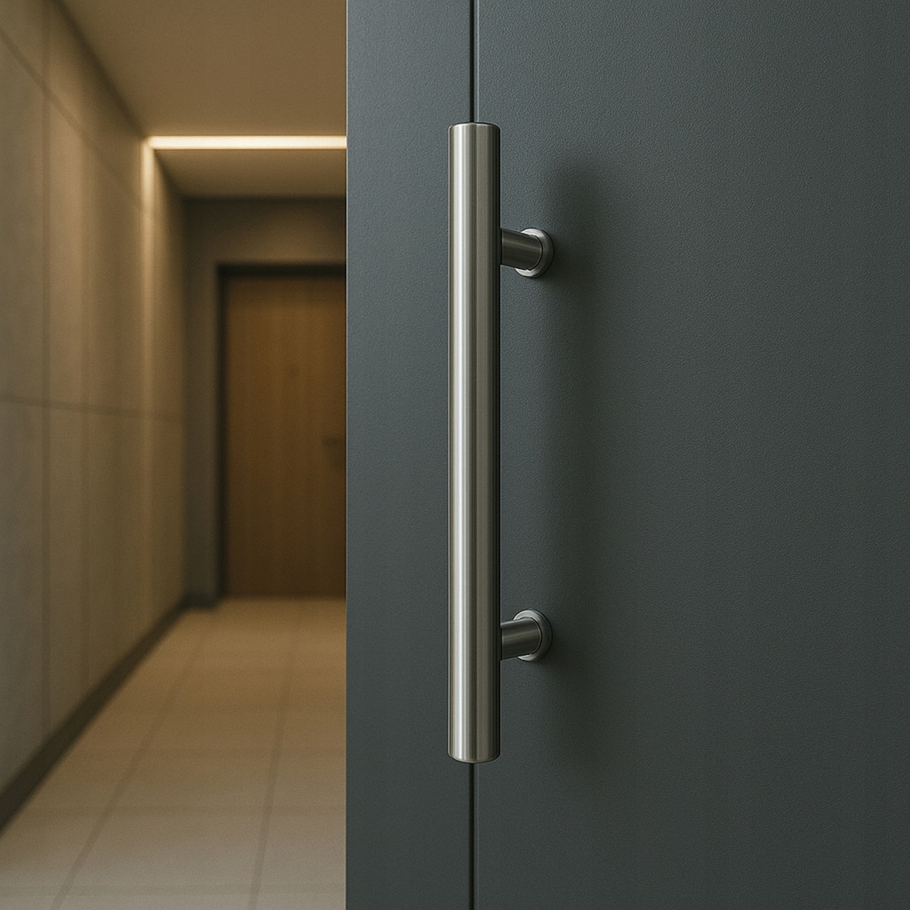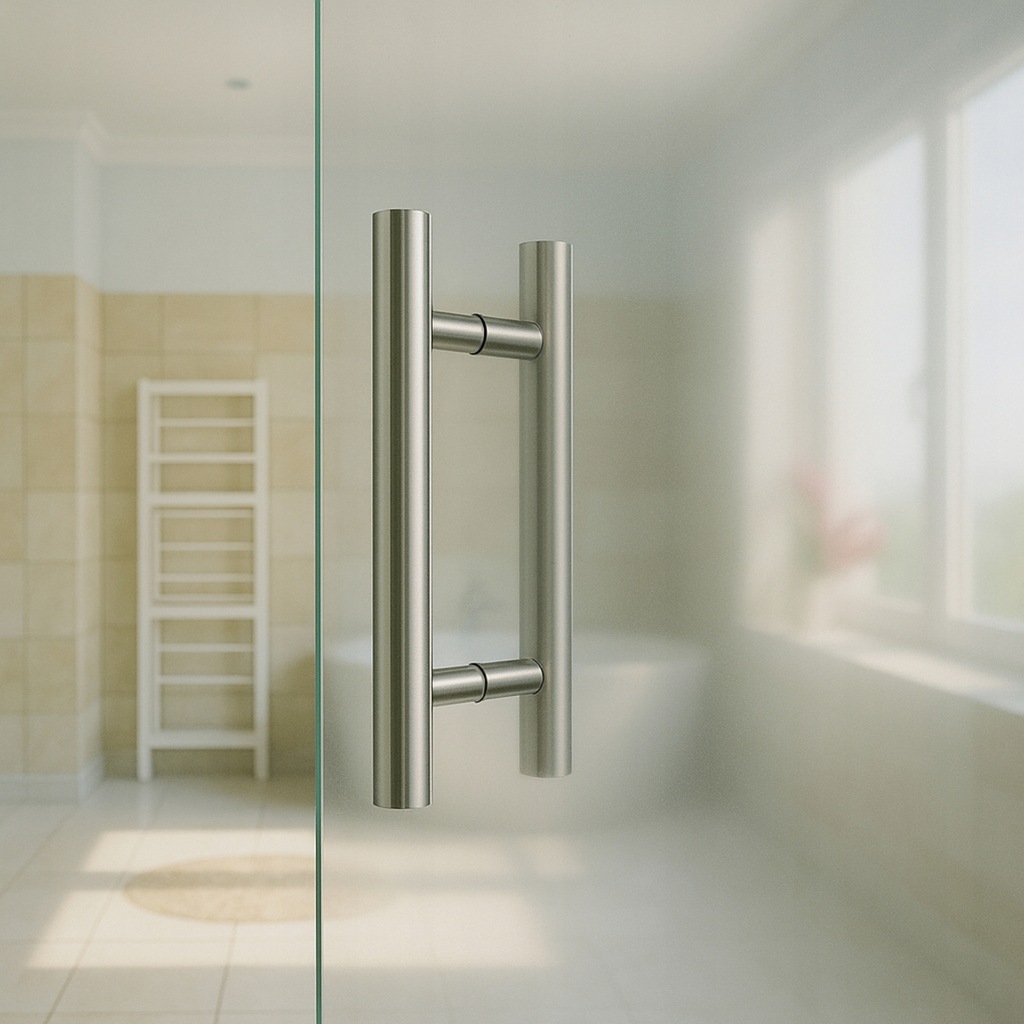 Pochwyt (uchwyt) drzwiowy, kompletny - dwustronny odgięty.