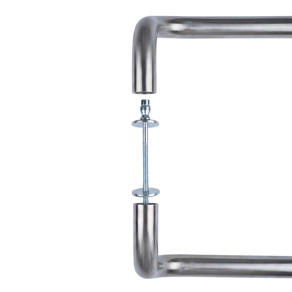 Pochwyt (uchwyt) drzwiowy, kompletny - dwustronny odgięty wykonany ze stali nierdzewnej.
