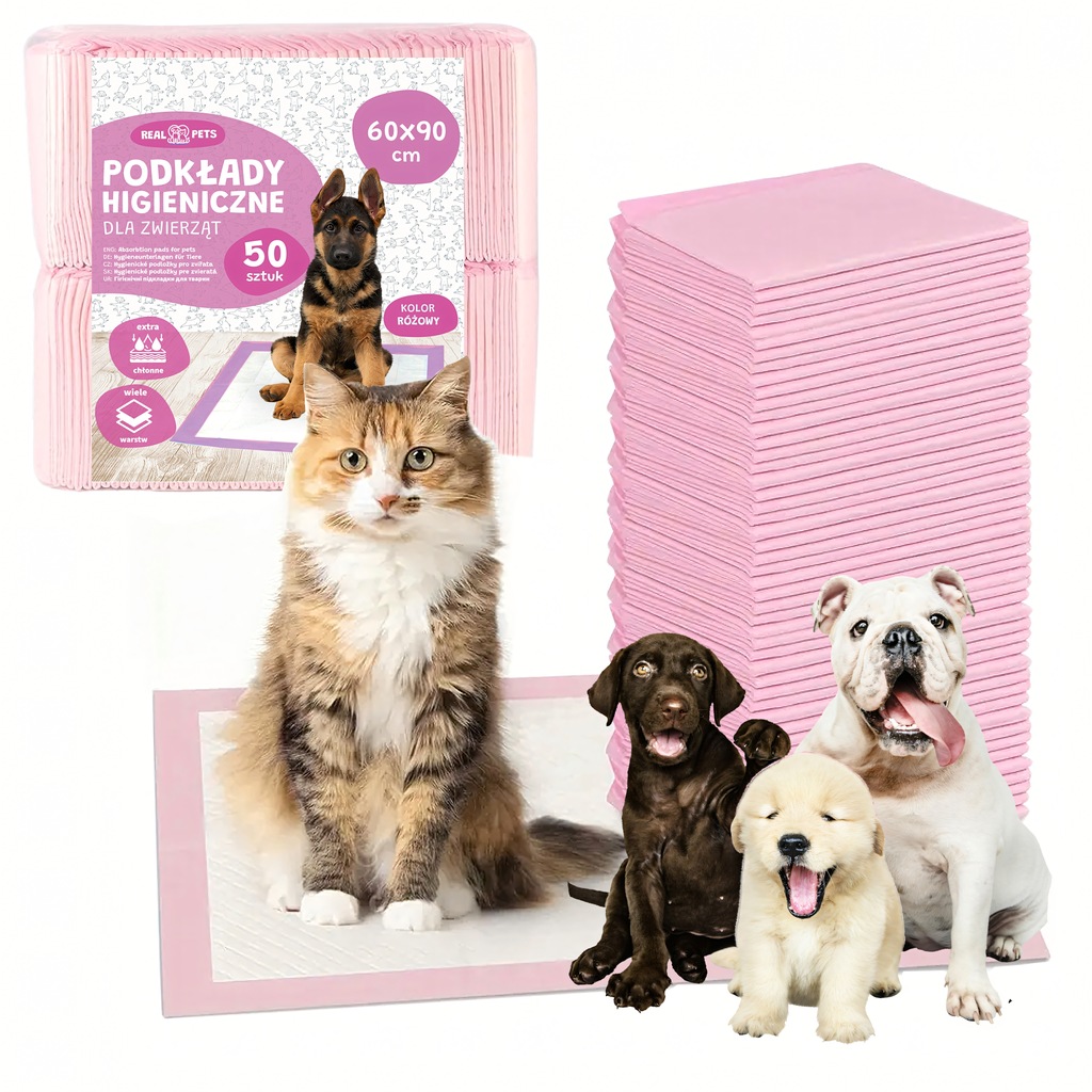 PODKŁADY HIGIENICZNE DLA ZWIERZĄT PSA KOTA DO NAUKI SIKANIA 60X90 CM 50 SZT