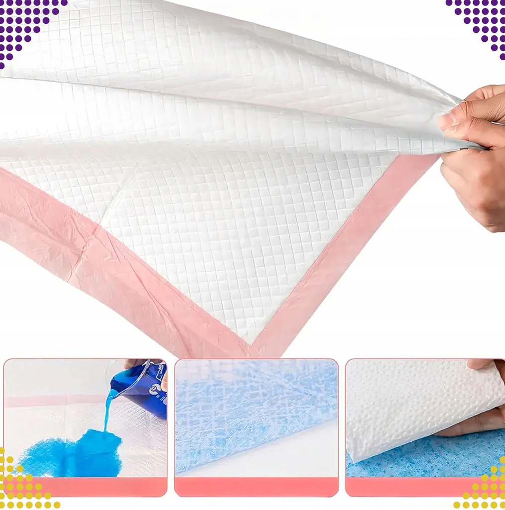 ✔️ Wysoko chłonność – podkłady są wyjątkowo chłonne, dzięki czemu całość cieczy wsiąka w nie momentalnie.