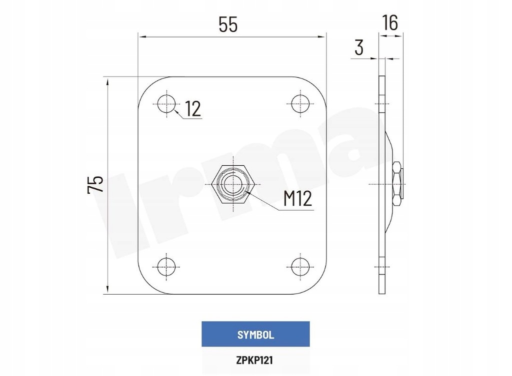 PODSTAWA ZAWIASA REGULOWANA M12 55x75x3mm