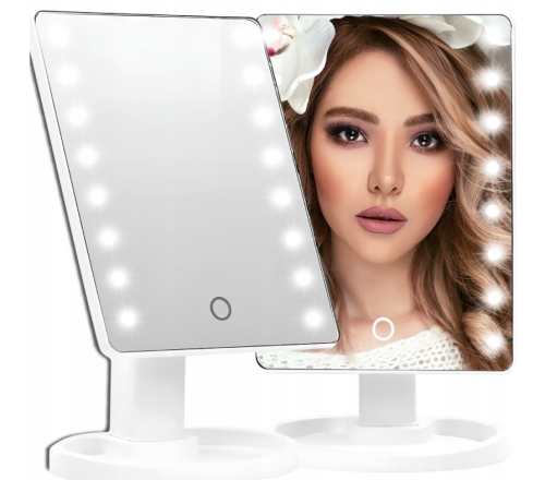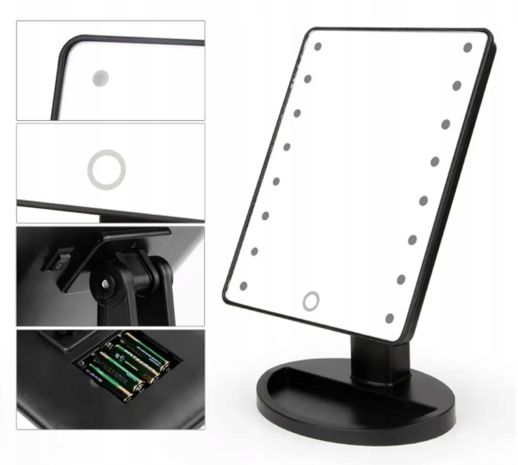 Diody LED są uruchamiane dotykowo - wystarczy kliknąć w dowolnym miejscu lusterka, aby je aktywować i rozświetlić sobie przestrzeń roboczą np. w trakcie wykonywania makijażu.