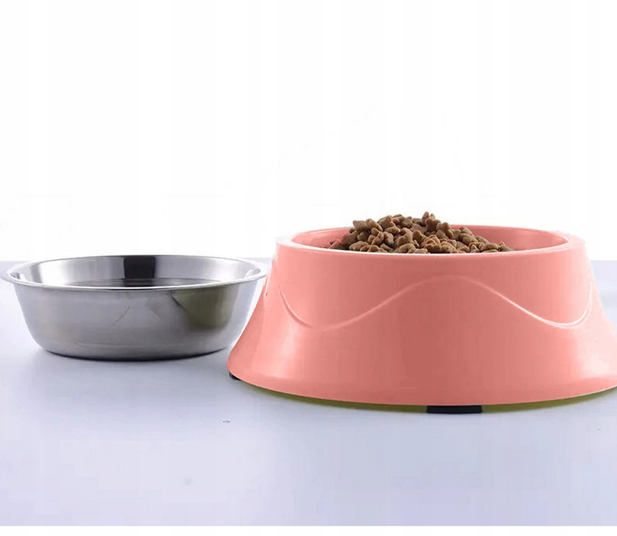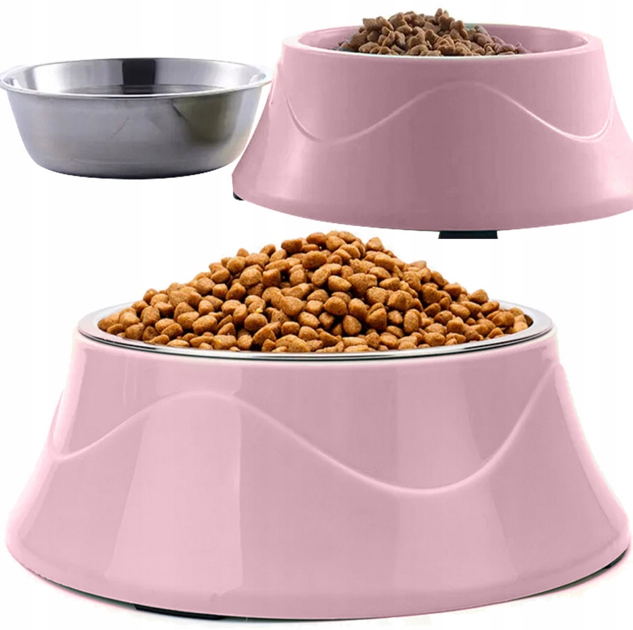 PODWÓJNA MISKA 2W1 NA KARMĘ SUCHĄ MOKRĄ WODĘ DLA ZWIERZĄT PSA KOTA RÓŻOWA