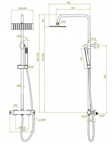 KOLUMNA NATRYSKOWA Z BATERIĄ TERMOSTATYCZNĄ PLA_00TD