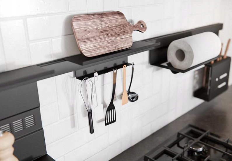 ✔️ Półka górna RE-571 (350x96x1,6 mm) na akcesoria kuchenne w czarnym macie - porządek w nowoczesnym wydaniu