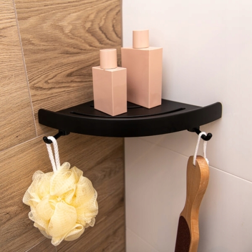 PÓŁKA ŁAZIENKOWA NAROŻNA CZARNA Z TWORZYWA ABS - AKA_704T