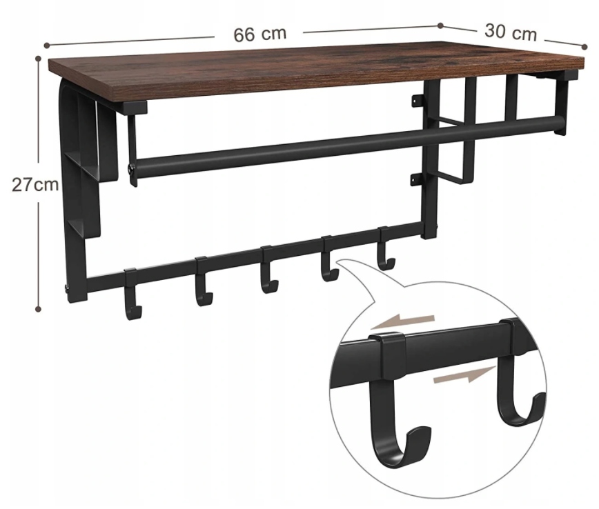 PÓŁKA ŚCIENNA Z WIESZAKAMI