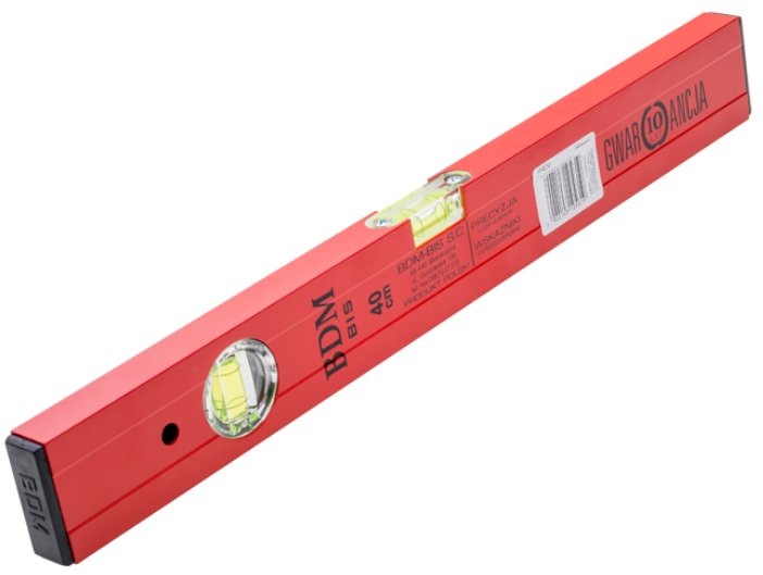Wykonane ze stopu aluminium o podwyższonej twardości, powierzchnia malowana proszkowo, libelle przykręcane lub przyklejone, mikroszczeliny pomiędzy libellą, a profilem zabezpieczone klejem specjalistycznym co daje 100 procentową pewność pomiarów, dokładność wskazań 0.029st.=0.5mm/m, ampułki wstrząsoodporne, gwarancja na wskaźniki 10 lat, elementy plastikowe wykonane z tworzyw wysokiej jakości odpornych na działanie czynników zewnętrznych Sposób pakowania: