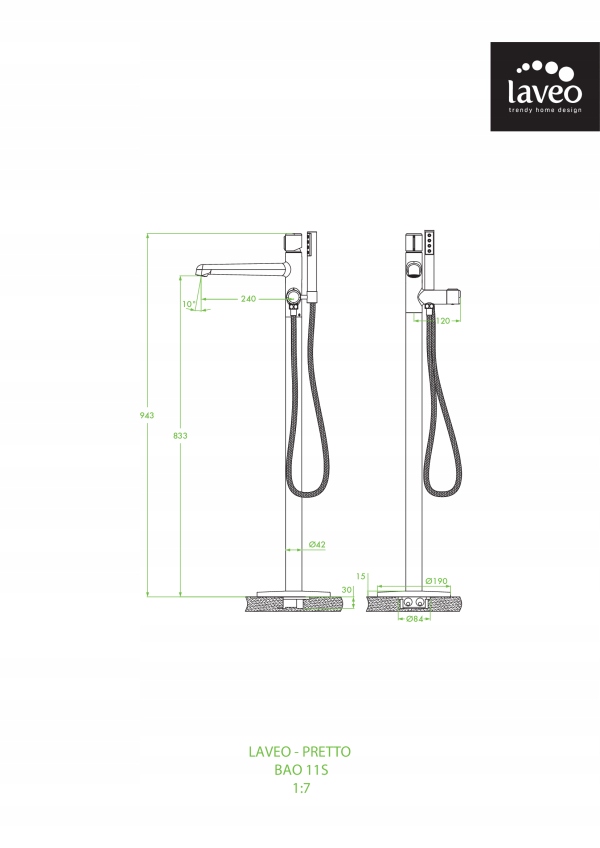 Bateria wannowa wolnostojąca Laveo Pretto BAO_711S