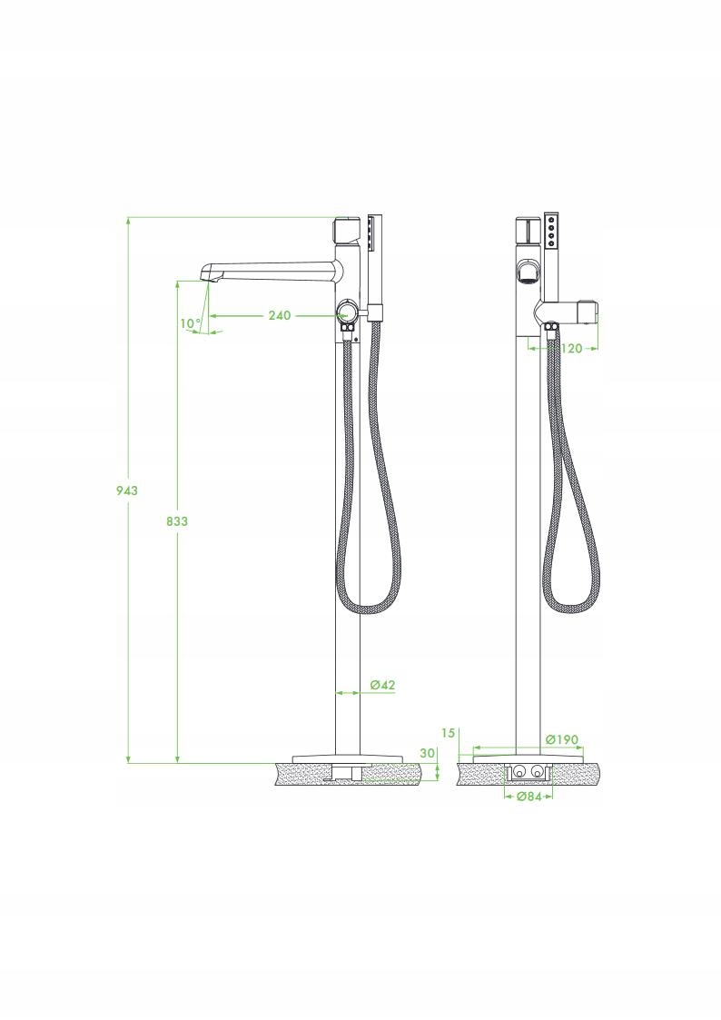 - – Zasięg wylewki: 240 mm
