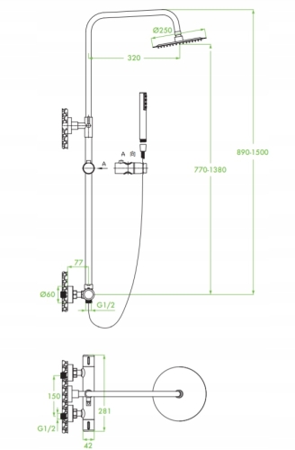 - Wysokość kolumny: 895 - 1320 mm