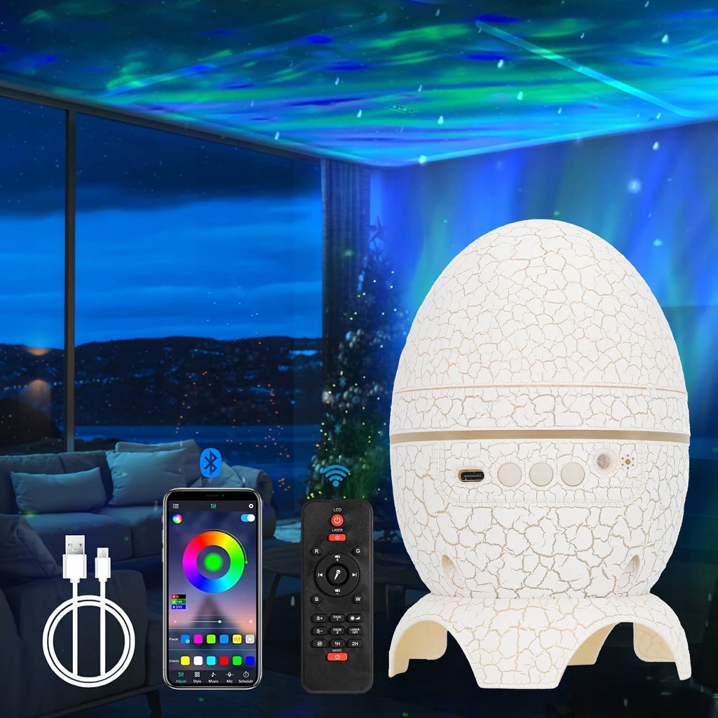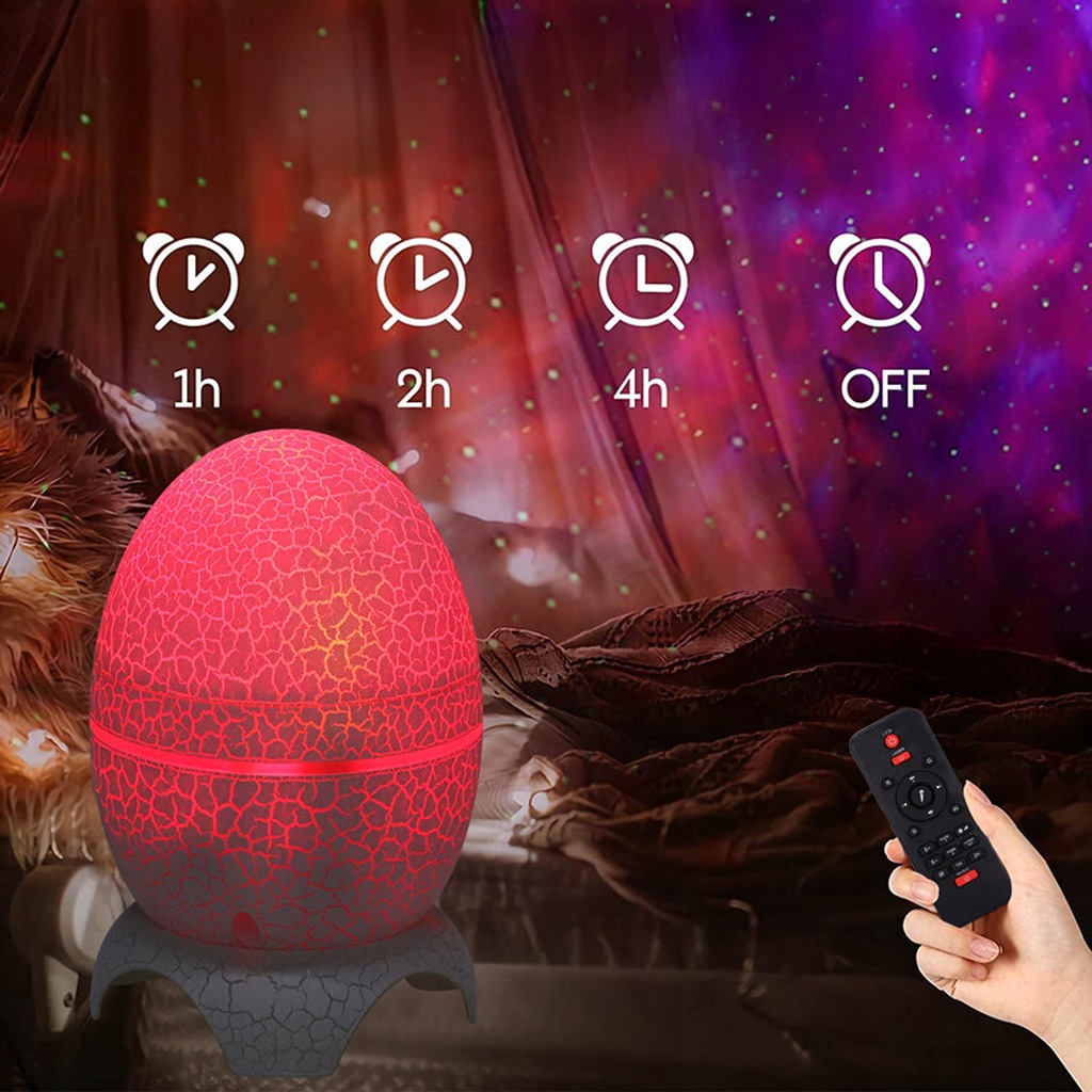 - Unikalny design – JAJO DINOZAURA Przyciąga wzrok i idealnie pasuje do dziecięcego pokoju lub kreatywnej przestrzeni. Efekt rozgwieżdzonej galaktyki - Kolorowe światła tworzą hipnotyzującą projekcję kosmosu – idealną do relaksu i zasypiania.