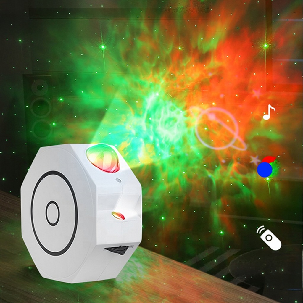 • Trójwymiarowy efekt gwiazd i zorzy:  Projektor tworzy realistyczny efekt kolorowej mgławicy i gwiazd – poczuj się jak w przestrzeni kosmicznej!