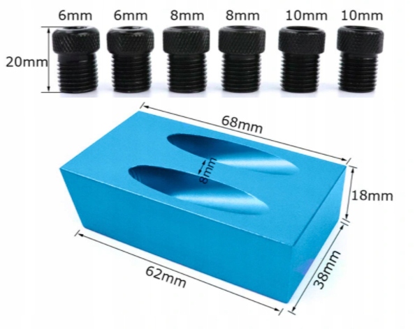 W komplecie nakładki do wiercenia otworów 6mm, 8mm, 10mm.