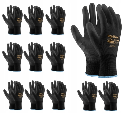 OGRIFOX Rękawice robocze z poliestru powlekane poliuretanem rozmiar 8 M - 12 par