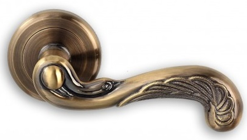 RETRO KLAMKA DO DRZWI NA OKRĄGŁEJ SZYLDZIE PATYNA