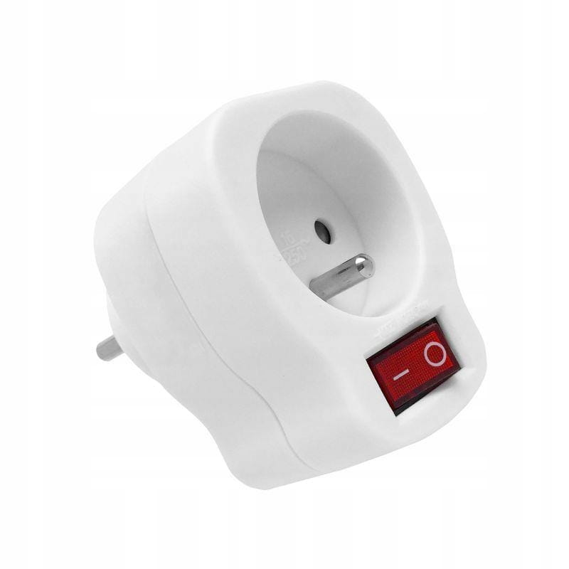 ROZGAŁĘŹNIK 1o Z UZIEMIENIEM 16A GNIAZDO ELEKTRYCZNE Z WYŁĄCZNIKIEM BIAŁE