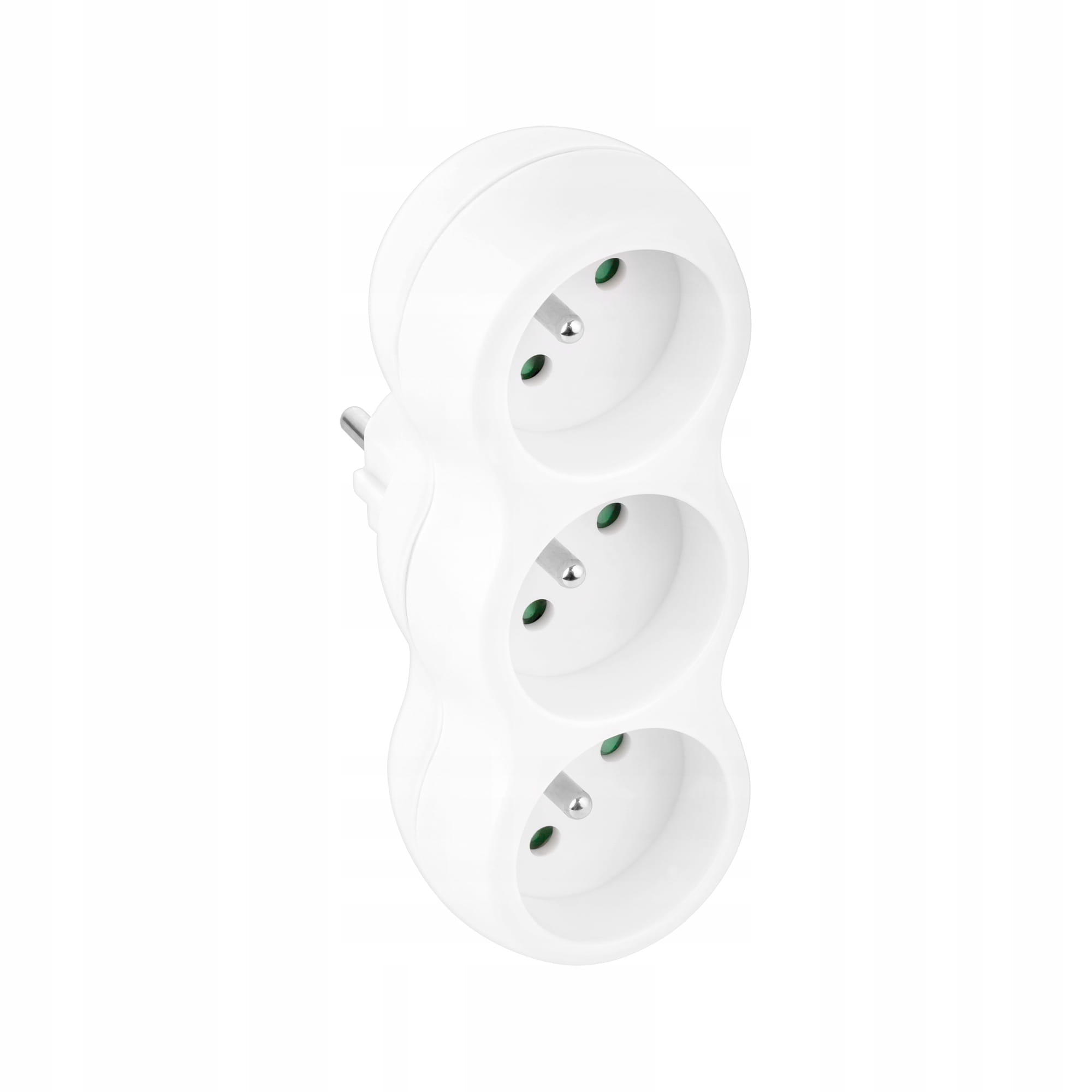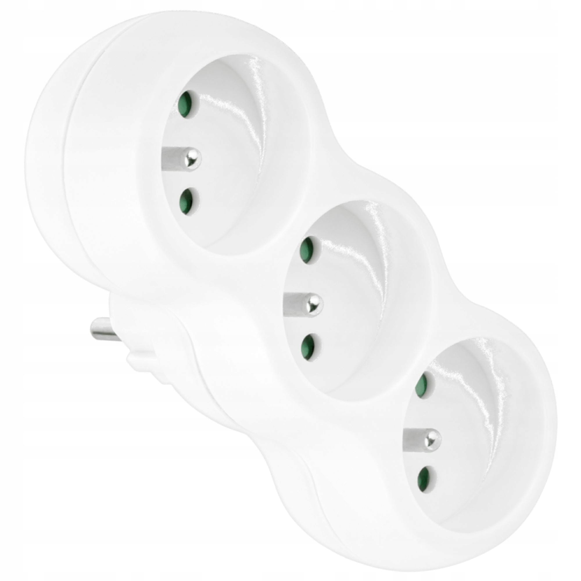 Rozgałęźnik to urządzenie umożliwiające podłączenie kilku sprzętów do jednego gniazdka. Jest szczególnie przydatny w biurach lub gabinetach. Posiada trzy okrągłe gniazda z uziemieniem.