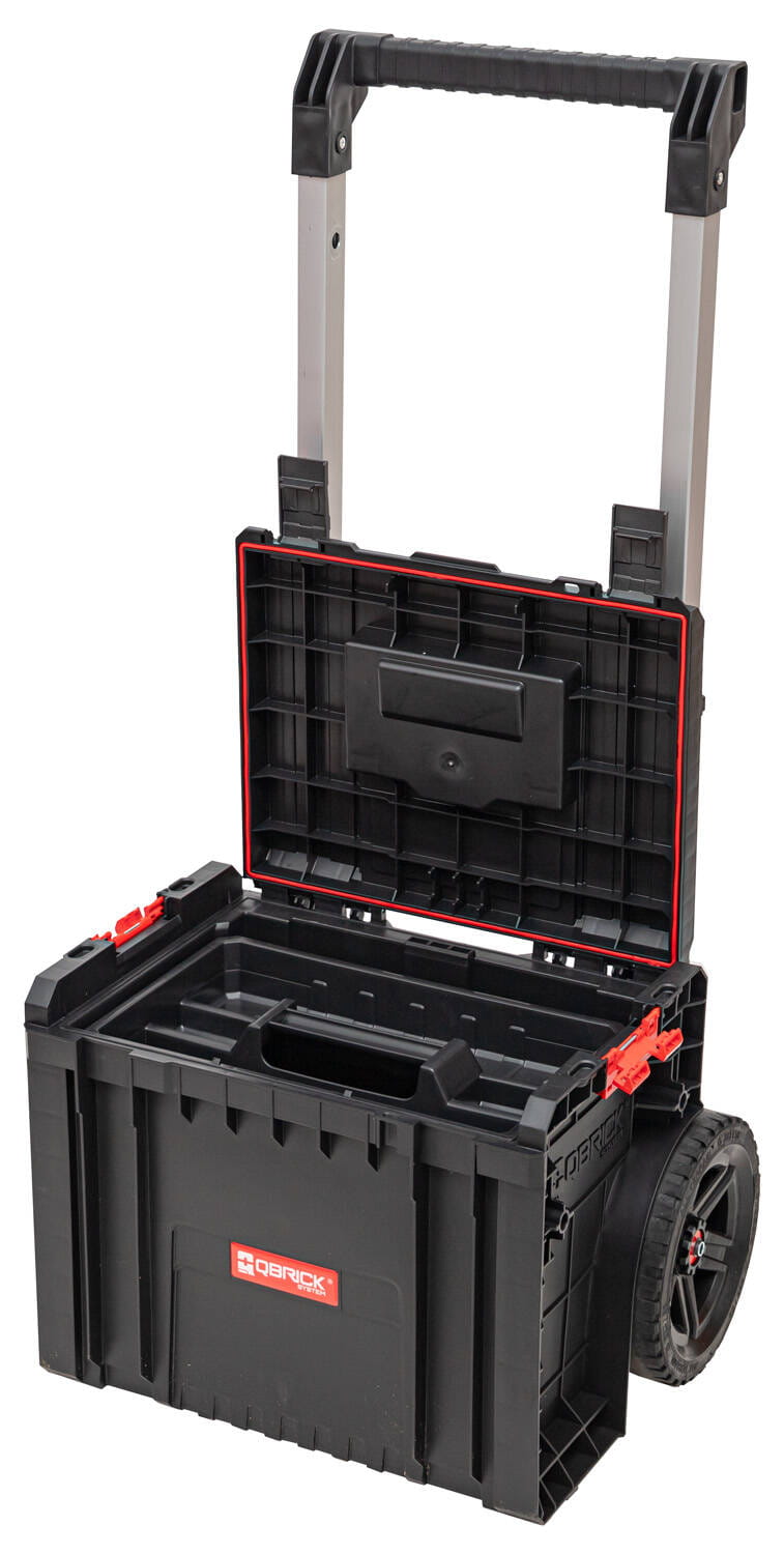 ▶ Skrzynia narzędziowa CART pluss QBRICK PRO to przenośna skrzynia narzędziowa o pojemności 29 litrów. Wyposażona jest w koła oraz podwójną, teleskopową rączkę, która może być zdjęta.