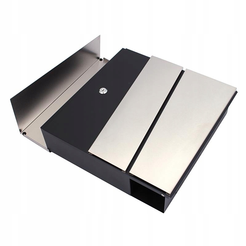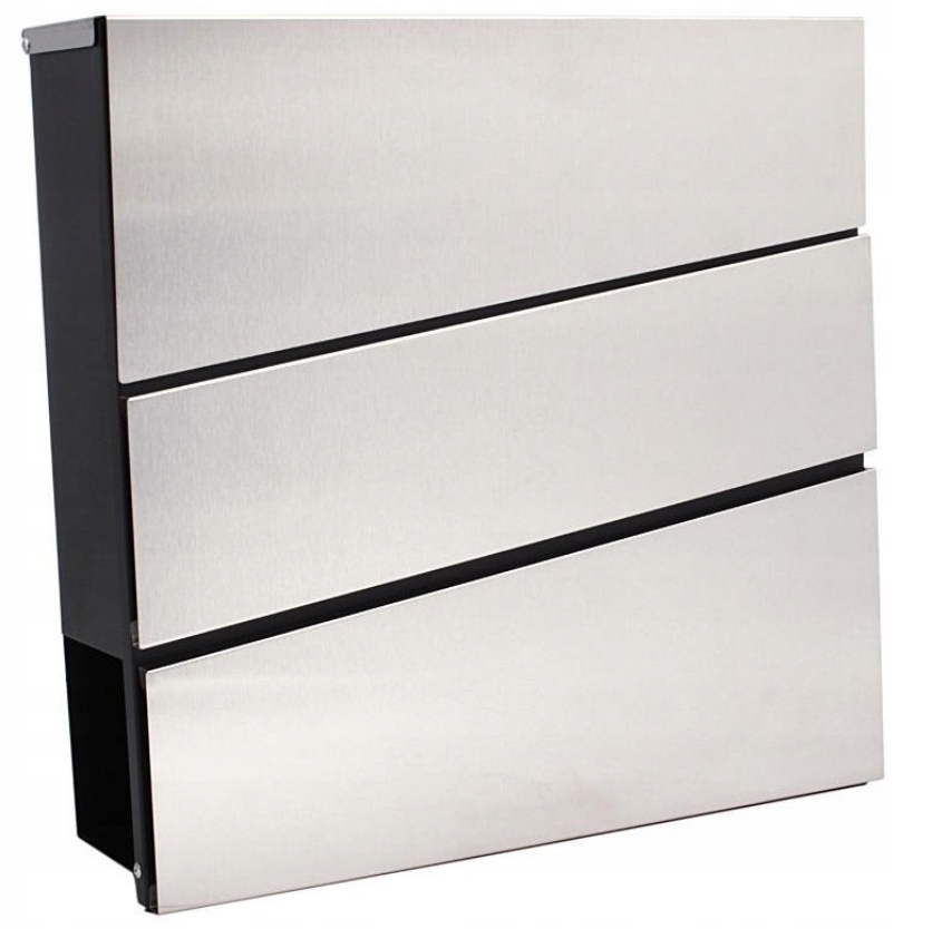 Nowoczesna skrzynka wykonana ze stali szlachetnej z tubą na gazety. W zestawie dwa klucze oraz kołki rozporowe wraz ze śrubami, niezbędne do montażu skrzynki.