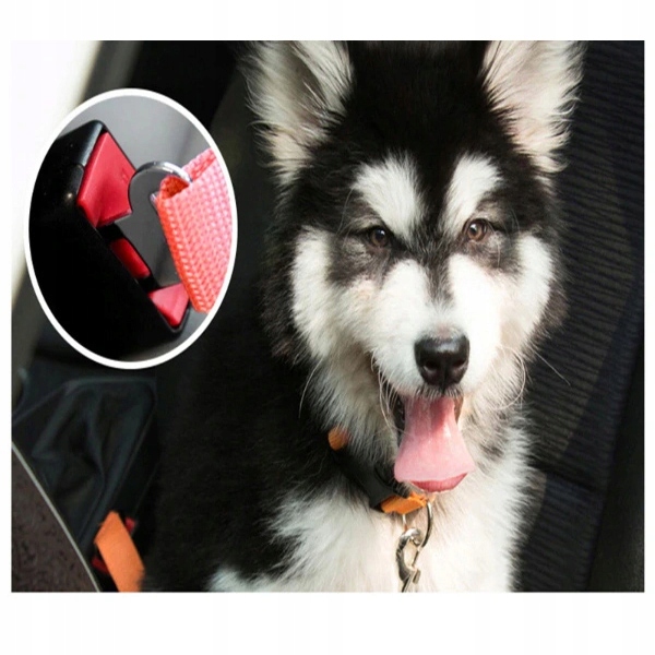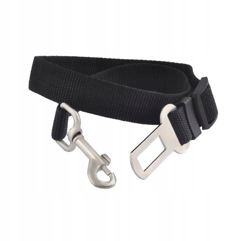 Samochodowa smycz dla zwierząt, przypinana do szelek samochodowych lub obroży za pomocą karabińczyka na końcu smyczy.